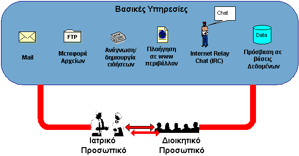 Με τον όρο βασικές υπηρεσίες εννοούμε τις υπηρεσίες του Διαδικτύου οι οποίες συνθέτουν το πρώτο επίπεδο υπηρεσιών που μπορεί να παρέχει ένα δίκτυο και απευθύνονται στο σύνολο των χρηστών του δικτύου. Στο παρακάτω σχήμα παρουσιάζονται οι υπηρεσίες αυτές για το δίκτυο ΑΠΑ.