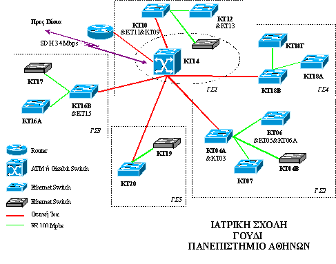 -        ΑΤΜ μεταγωγείς (switches) ρυθμού μετάδοσης σε πρώτη φάση 155 Mbps άμμεσα αναβαθμίσιμου σε 622 Mpbs.