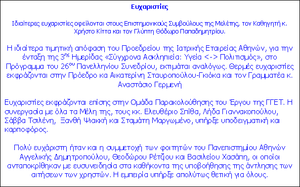 μελέτη αντικείμενο δηλαδή Υγείας και Πρόνοιας, Παιδείας και Θρησκευμάτων. Τέλος